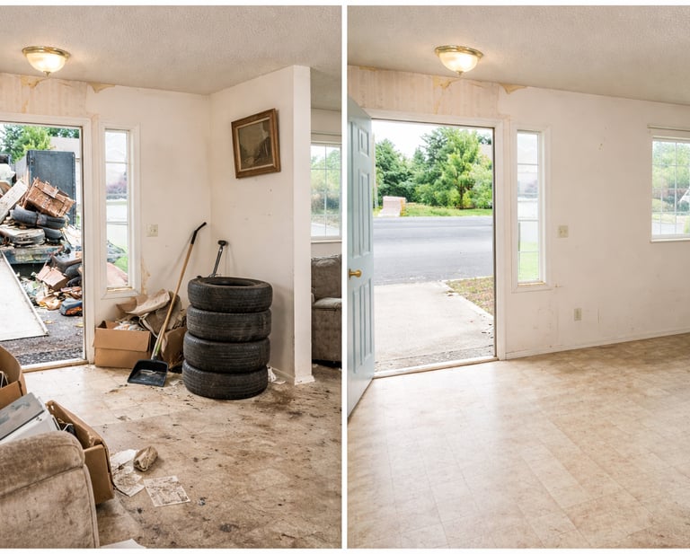At the bottom of the page , you will find images showcasing our work and services. Whatever service you need we are here to handle it quickly,safely and with care, making space clutter-free and stress free